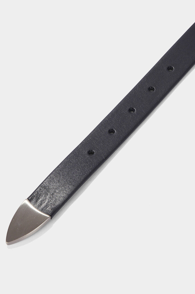 This belt is made of flexible cowhide material and boasts luxurious quality. It has five holes for silhouette adjustment and a silver-tone metal buckle for accent. The calm color and clean design make it easy to match with anything.