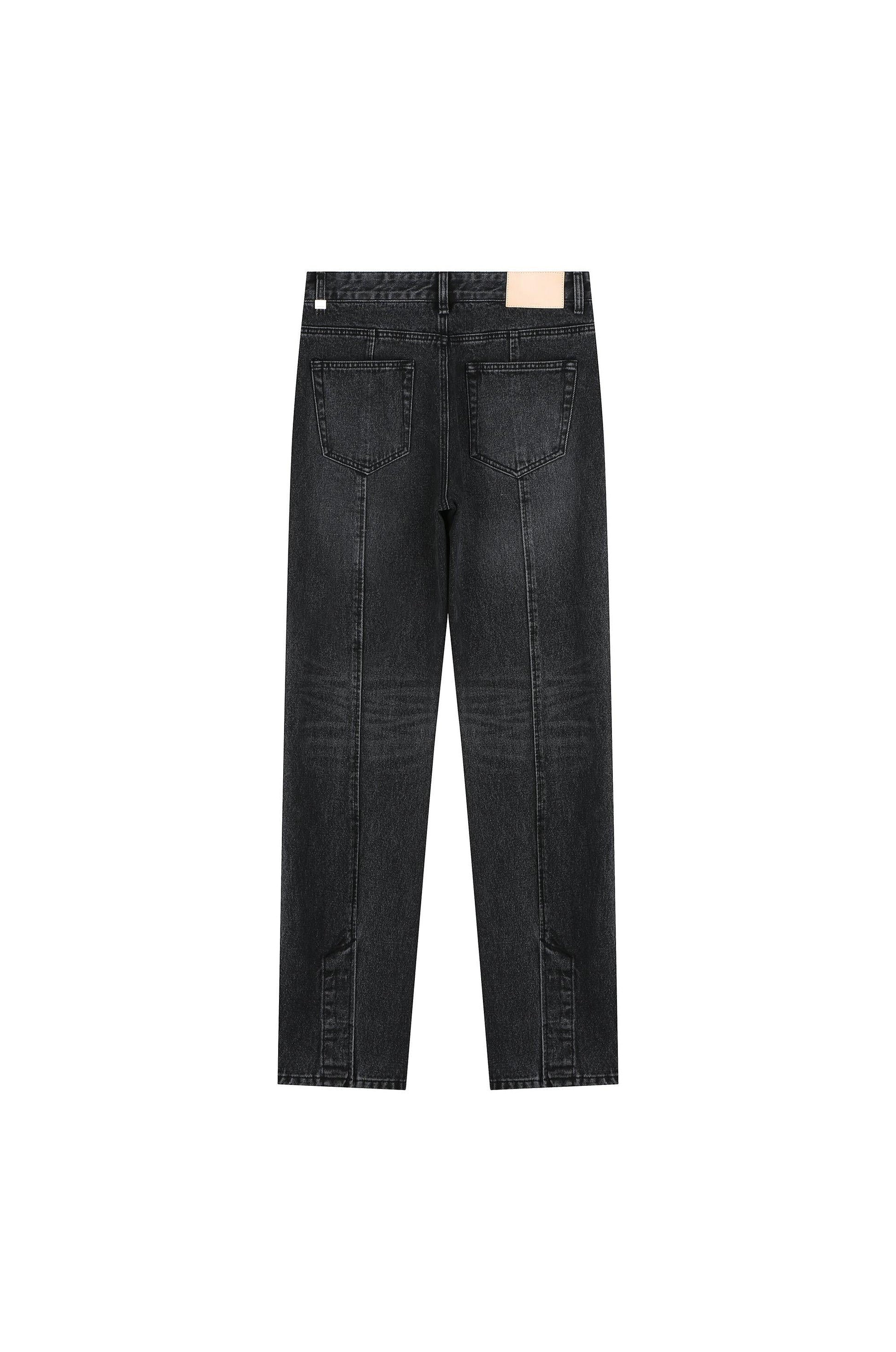 Slim Slit Denim Pants featuring a modern slim fit with a subtle slit at the back hem for ease of movement and a contemporary touch. Crafted from durable denim, these pants blend classic material with thoughtful design details, making them a versatile piece for casual and streetwear-inspired outfits.