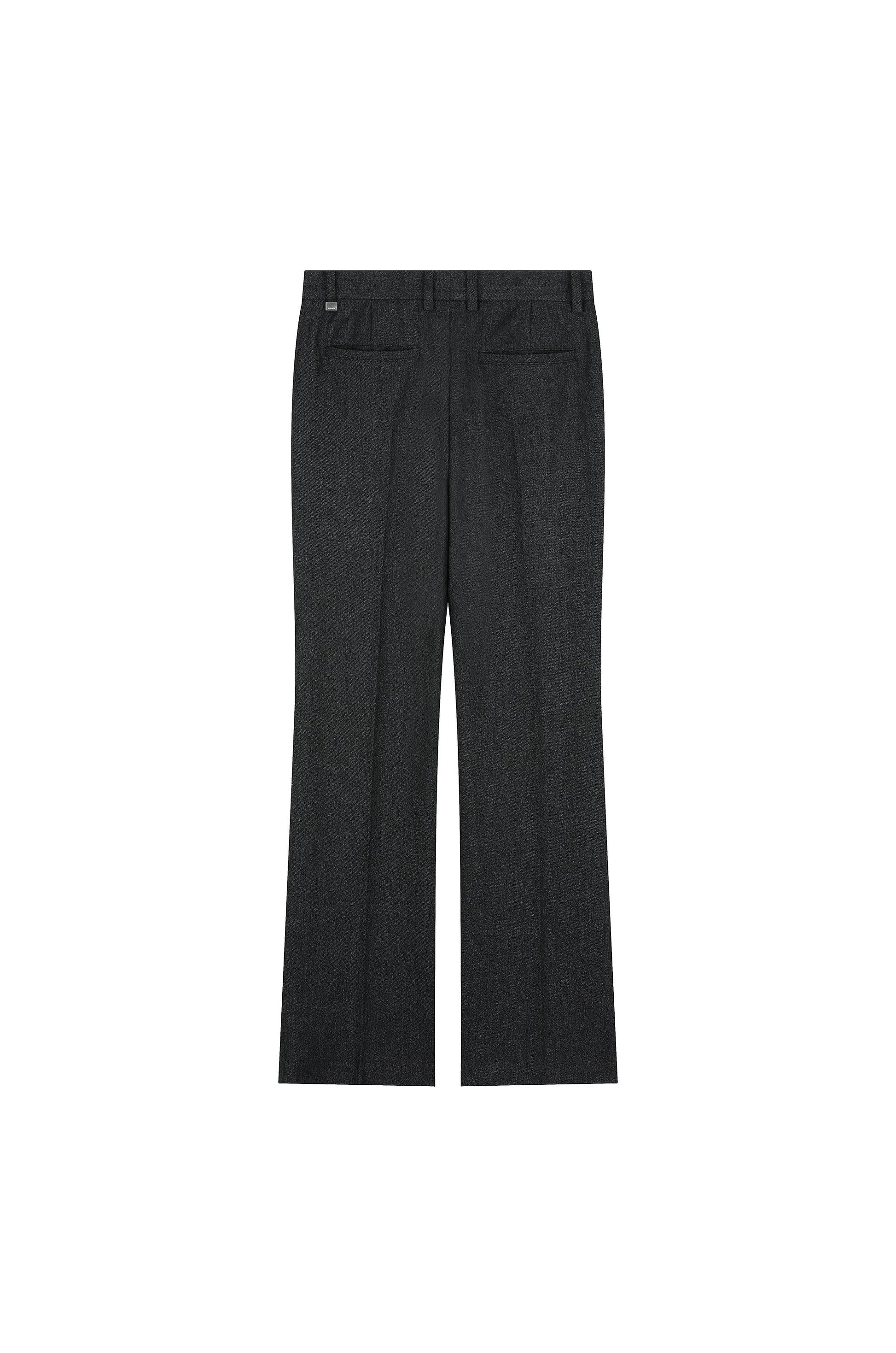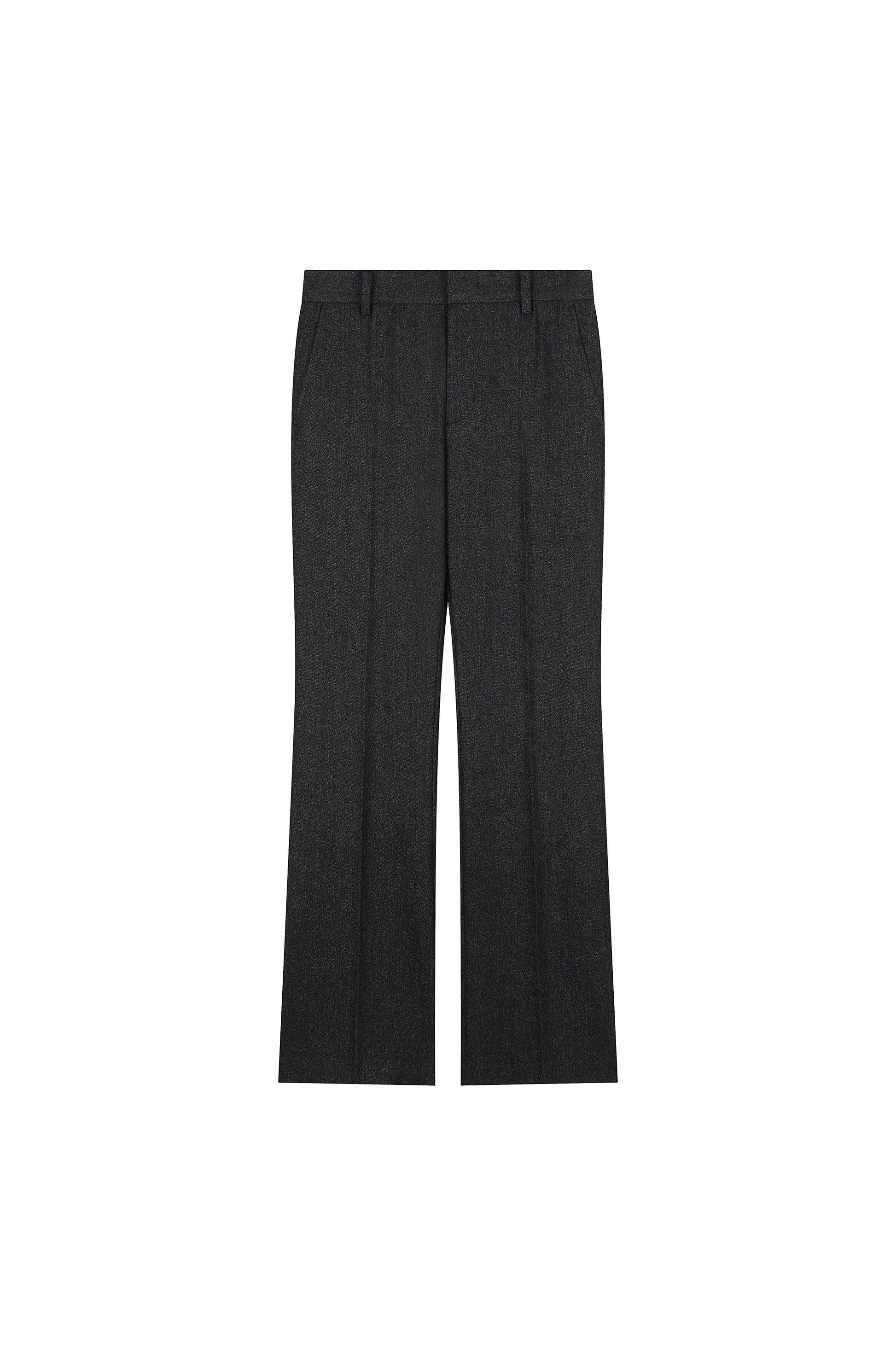 Crafted from a premium wool blend, these slim flare pants combine elegance with everyday comfort. Designed to hug the hips and thighs before gently flaring out at the hem, they create a flattering silhouette that elongates the legs. The fabric offers warmth and softness, making them ideal for both professional and casual settings. Pair them with a tailored blazer for a refined office look, or style with a cozy knit for effortless sophistication.