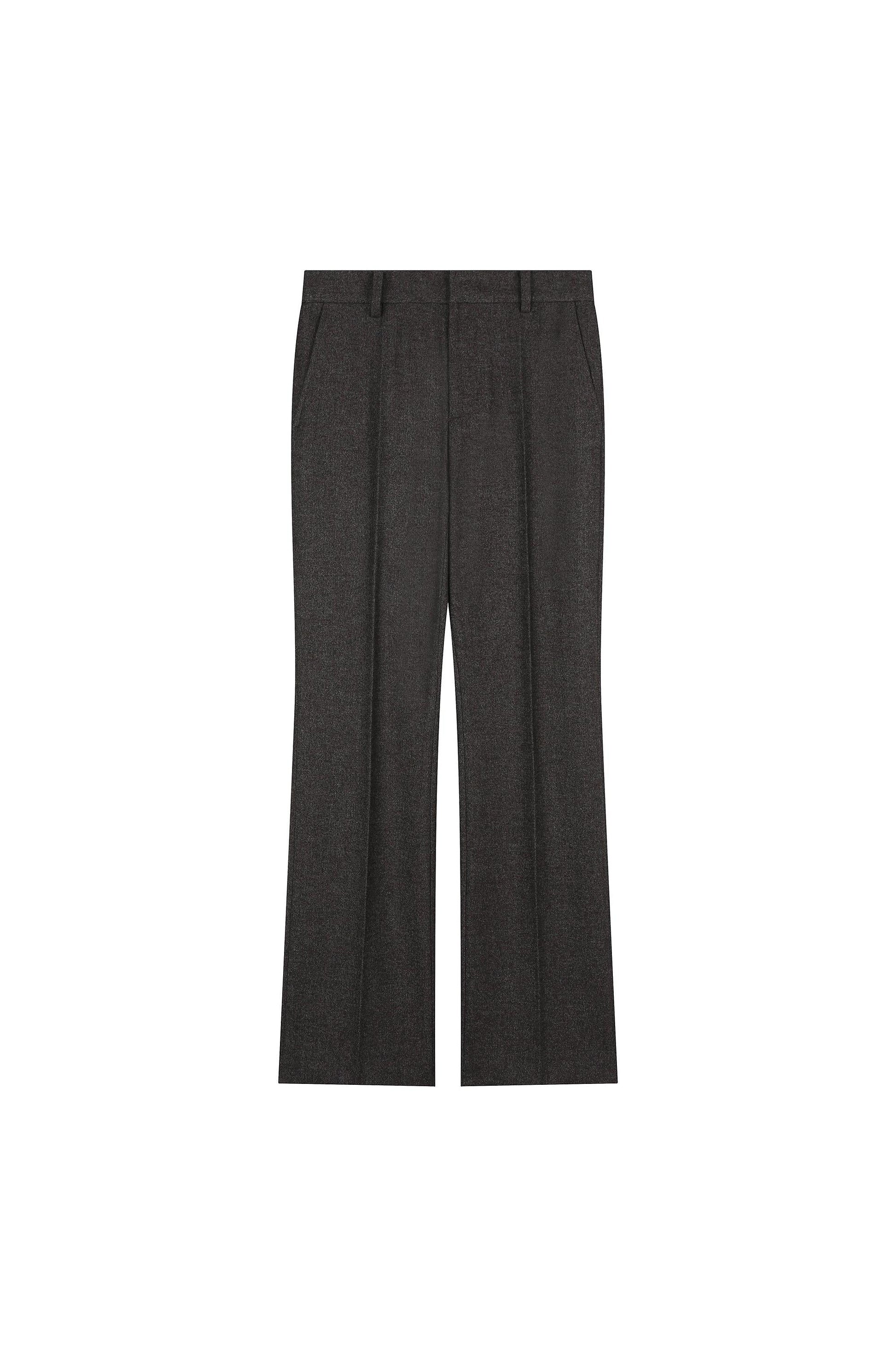 Men’s Slim Flare Pants crafted from wool blend fabric. Designed with a slim fit through the thigh that subtly flares out toward the hem, these pants create a sleek and modern silhouette. The premium wool fabric ensures comfort and a refined finish, making them a versatile choice for both formal and contemporary styling.