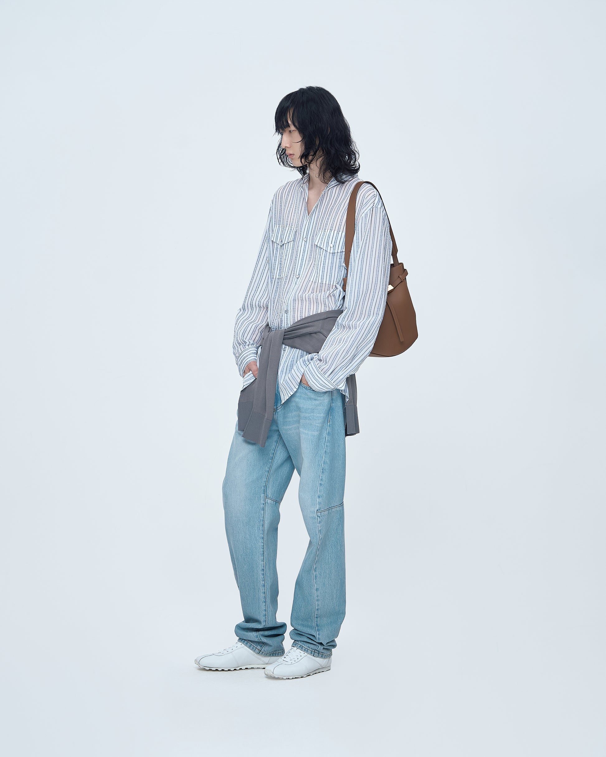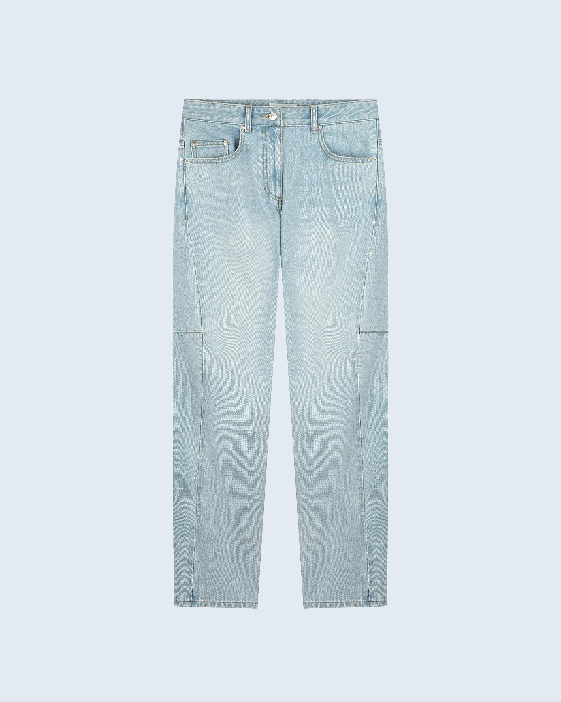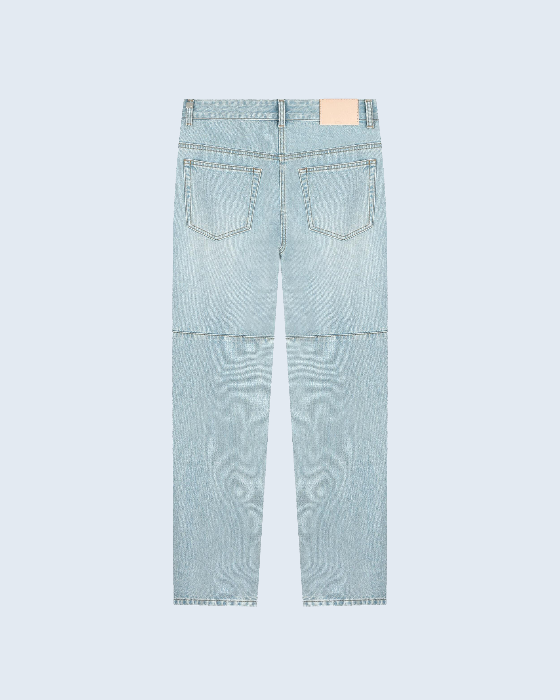 Jeans designed with a barrel-shaped silhouette that creates volume through the leg while tapering slightly at the hem. The structured denim maintains shape, offering a modern and distinctive fit.