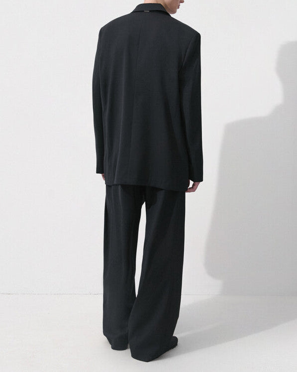 A tailored double-breasted silhouette defined by clean lines and a structured finish. The balanced proportions and refined construction create a modern look suitable for both formal and casual styling.