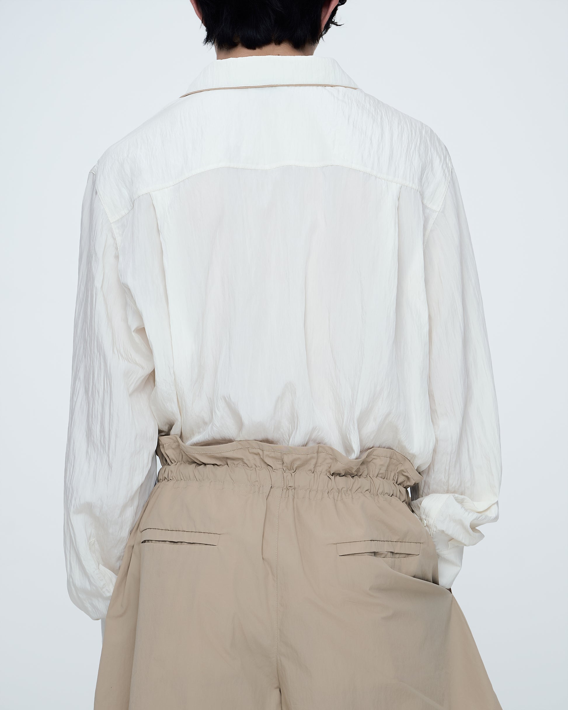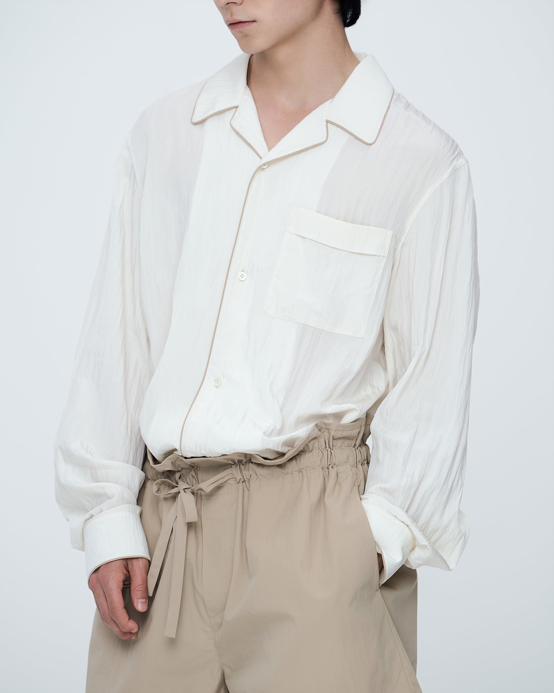 A relaxed shirt inspired by classic pajama styling, offering a comfortable and effortless look. The soft, lightweight fabric drapes gently on the body, making it suitable for both loungewear and casual everyday styling.