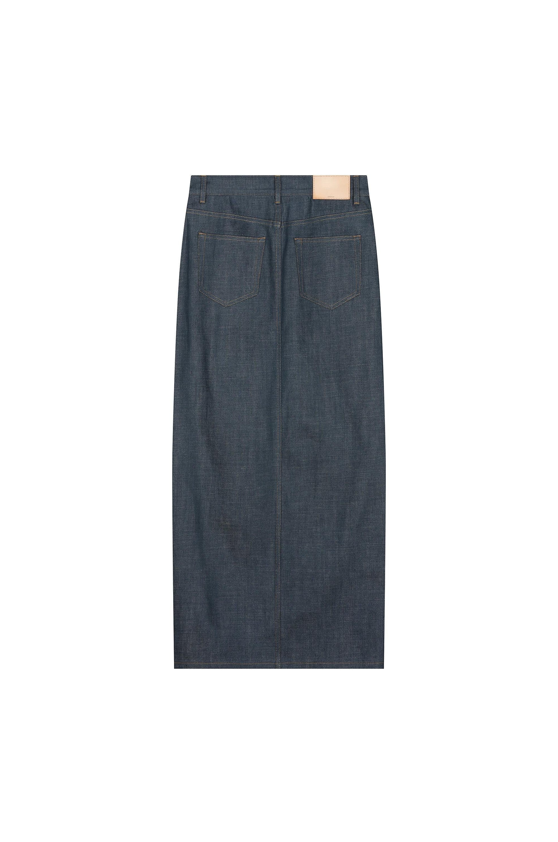 This Scoop Cut Denim Skirt combines elegance with a bold twist. With a long, calf-length silhouette and a flattering H-line cut, it offers a sleek and timeless look. The standout feature is the deep scoop cut, creating a daring slit that adds movement and an unexpected edge to the design. Made from durable denim, this skirt is perfect for both casual outings and more polished looks, providing versatility and style with every wear.