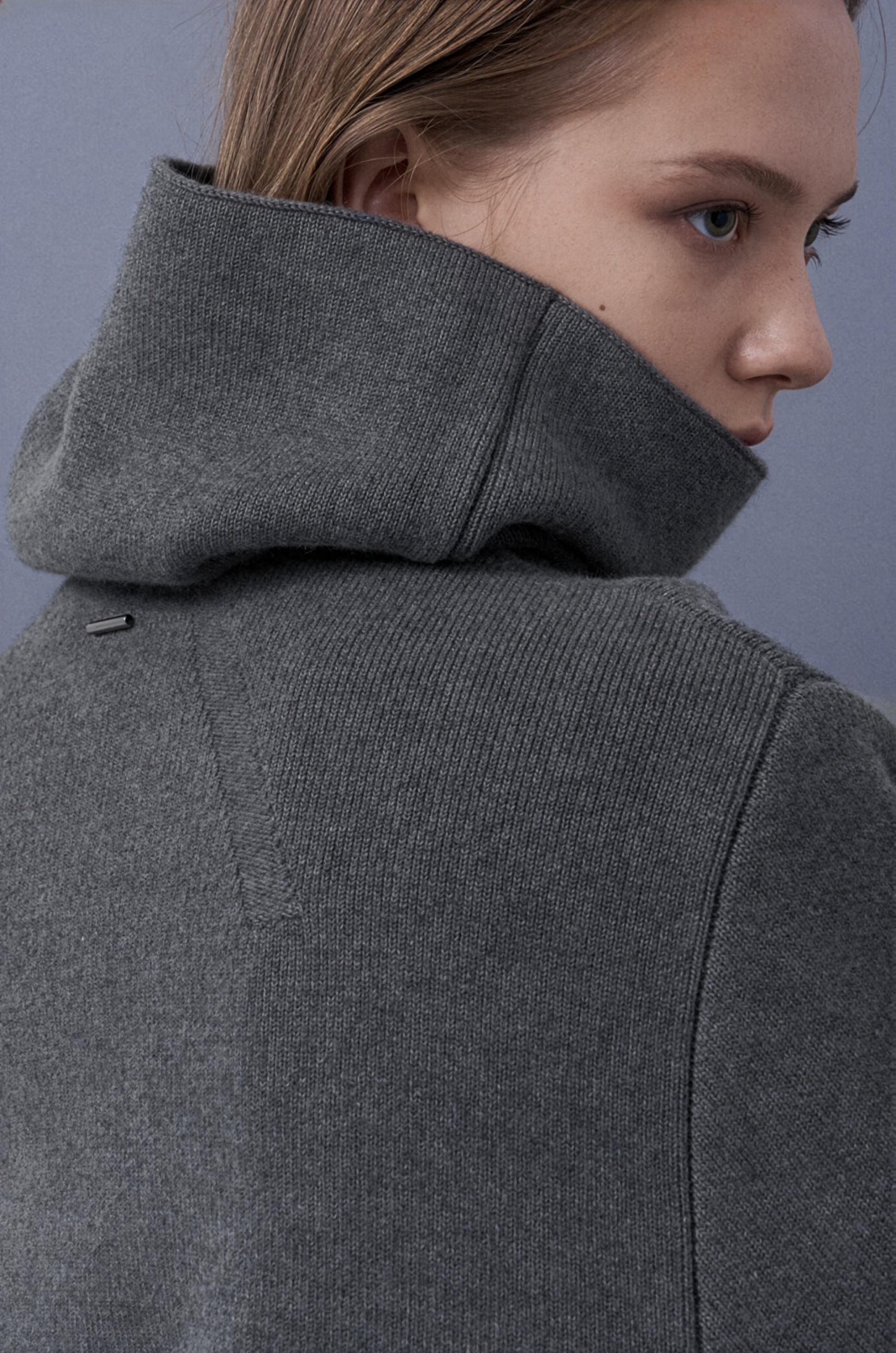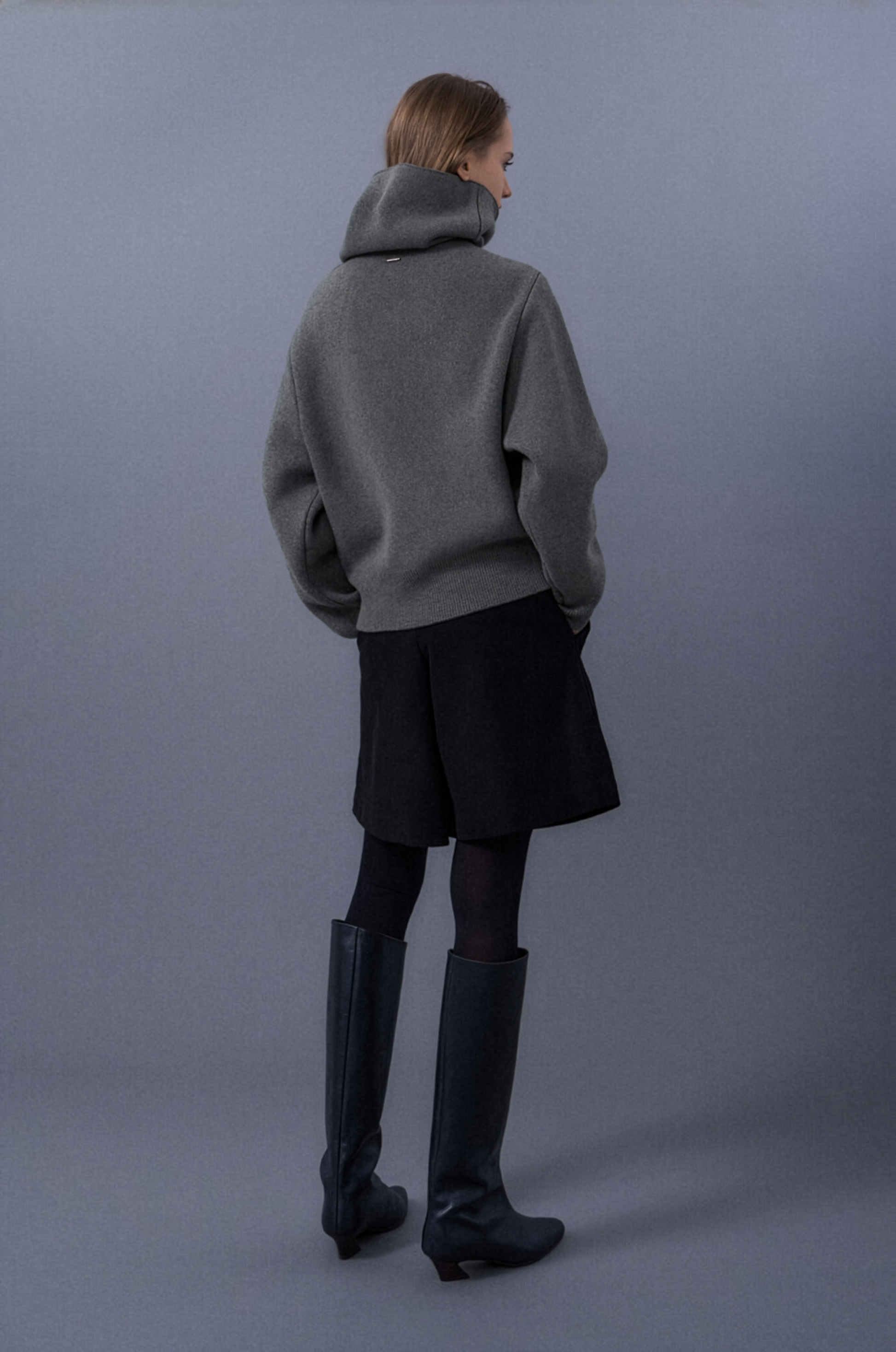 The Boxy High Neck Knit Top is a relaxed-fit long-sleeve knit crafted from a premium wool blend (95% wool). It features a wide, structured neckline that adds volume and a modern edge to the silhouette. With its soft texture and effortless shape, this piece is ideal for cozy, elevated styling.