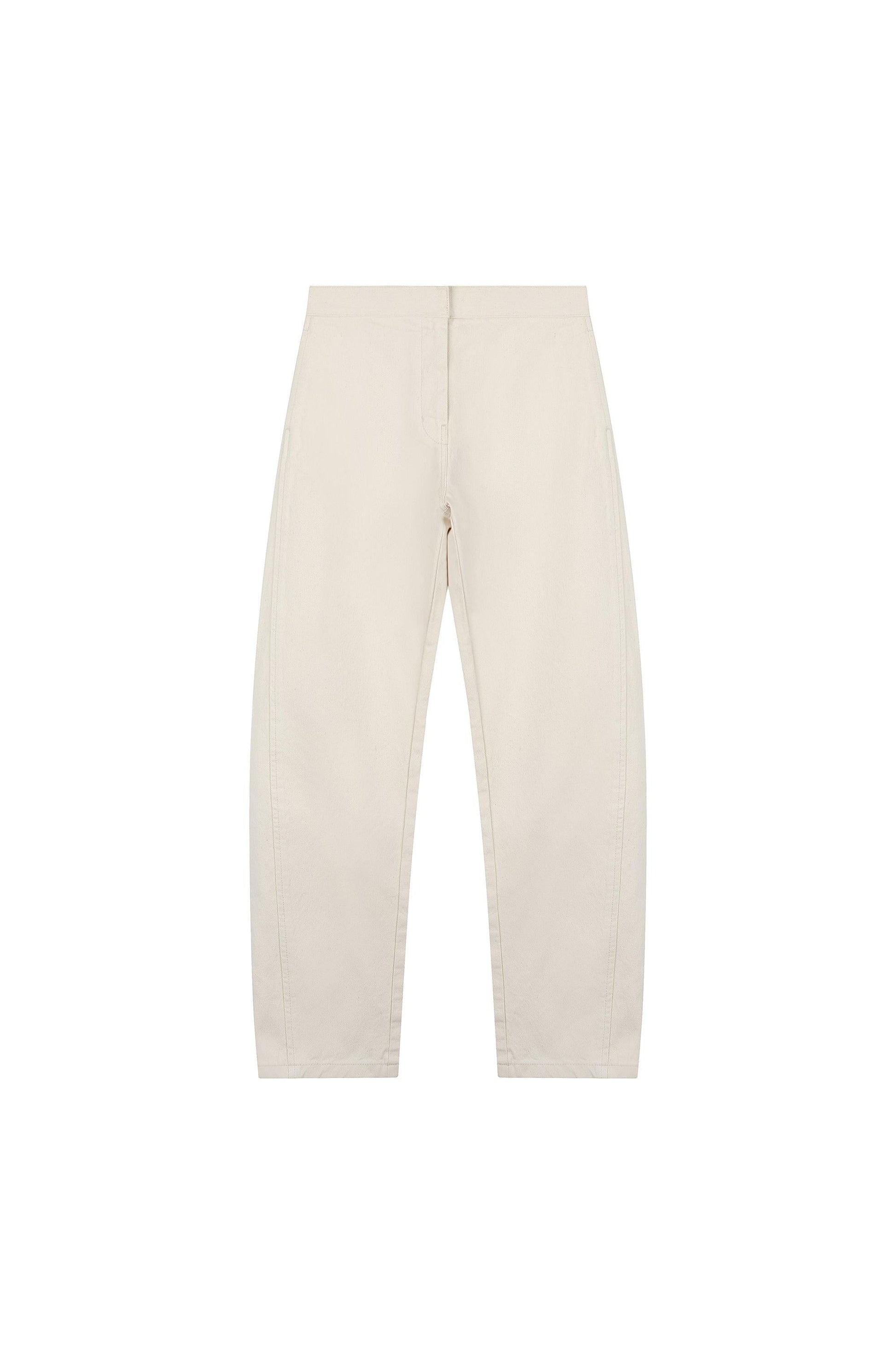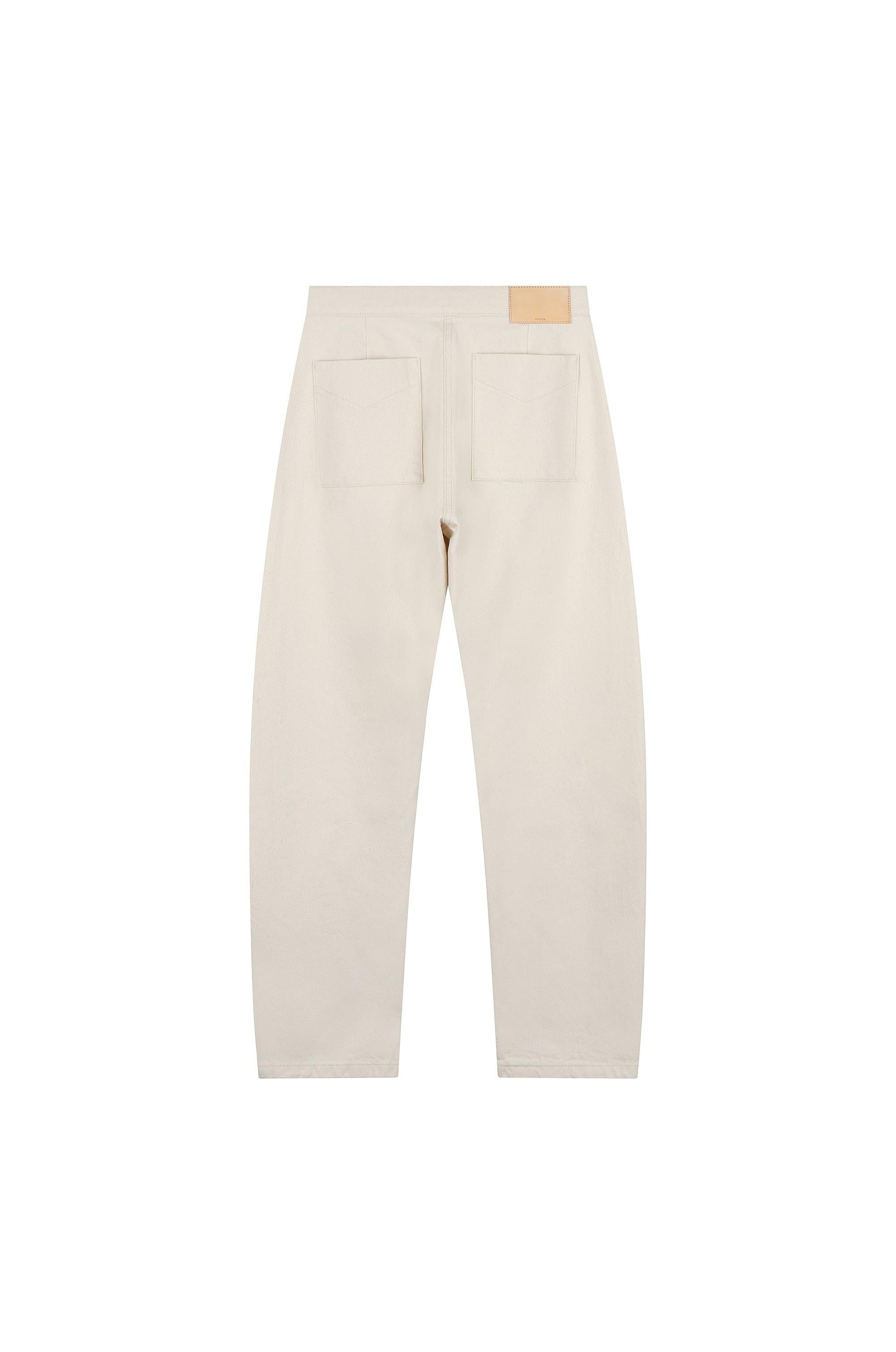 These denim pants feature a modern curved silhouette that flatters the natural shape of the legs. Crafted from 100% high-quality cotton, they offer a soft, breathable feel and durable structure. The subtle curve detail adds a contemporary touch while maintaining a clean, minimalist look, making them versatile for everyday wear. Pair with simple tops or layered outerwear for effortless style.